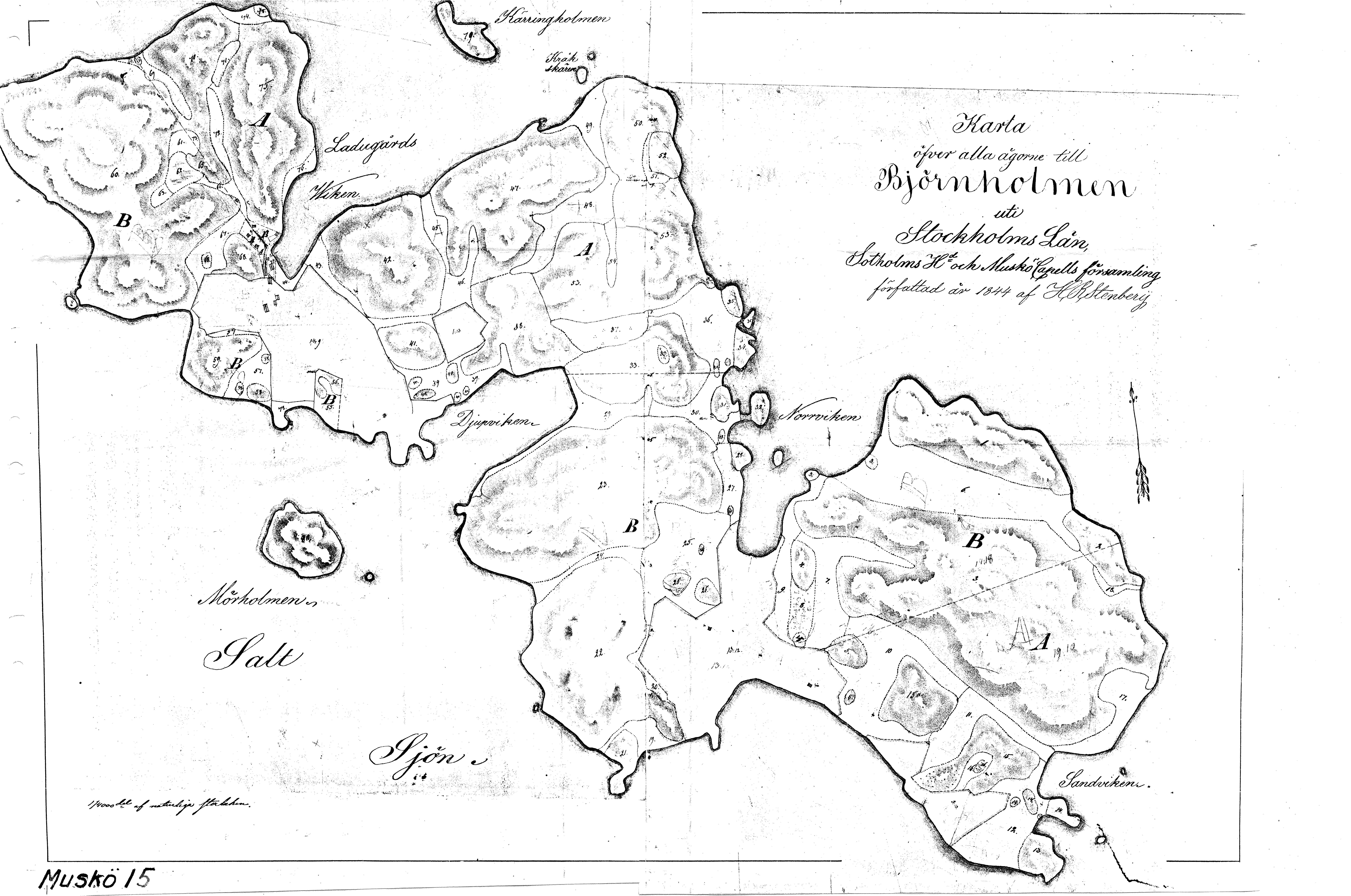 ”På ansökning der om af Sjötullswaktmästaren Lars Magnus Rundberg och förebragte giltige skäl fann Härads Rätten godt att med upplifwande och förnyande af äldre förbud fastställa ett förhöjt wite af 6 Rd 32 sk Banco, hwartill utom böter efter Lag och skyldighet att skadan ersätta en hvar sig hädanefter förfallen gör, som ofredar ägorna till dett bemälde Rundberg tillhörige 1/8 Mantal i Frälsehemmanet Björnholmen på Muskön, det ware sig antingen genom Skogshygge, Jagt, Fiske, oloflige wägars tagande öfwer åkrar och ängar samt gärdesgårdars grindars och leds nedbrytande och öppneställande så att skada der igenom sker, eller på hvad annat obehörigt sätt som hälst: Dock bör detta förbud, såwida det skall för gällande anses och kunna wid förefallande tillfällen tillämpas, en gång hvarje år upläsas i Muskö Församlings kyrka”.